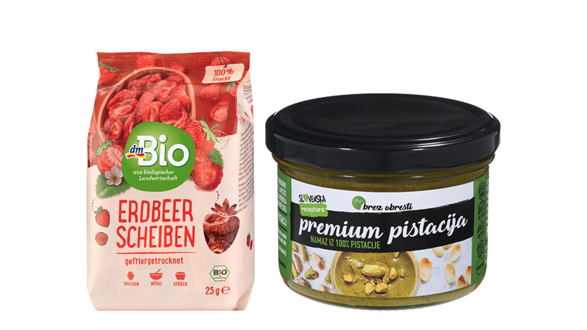 Jagode so s svojo sladkostjo in živahnimi barvami priljubljena izbira za valentinovo, saj simbolizirajo ljubezen in romantiko. dmBio liofilizirane rezine jagod bodo idealna poslastica in popestritev slavnostne večerje, v darilu pa prejmete tudi namaz iz 100% pistacij znamke Pajs brez obresti.